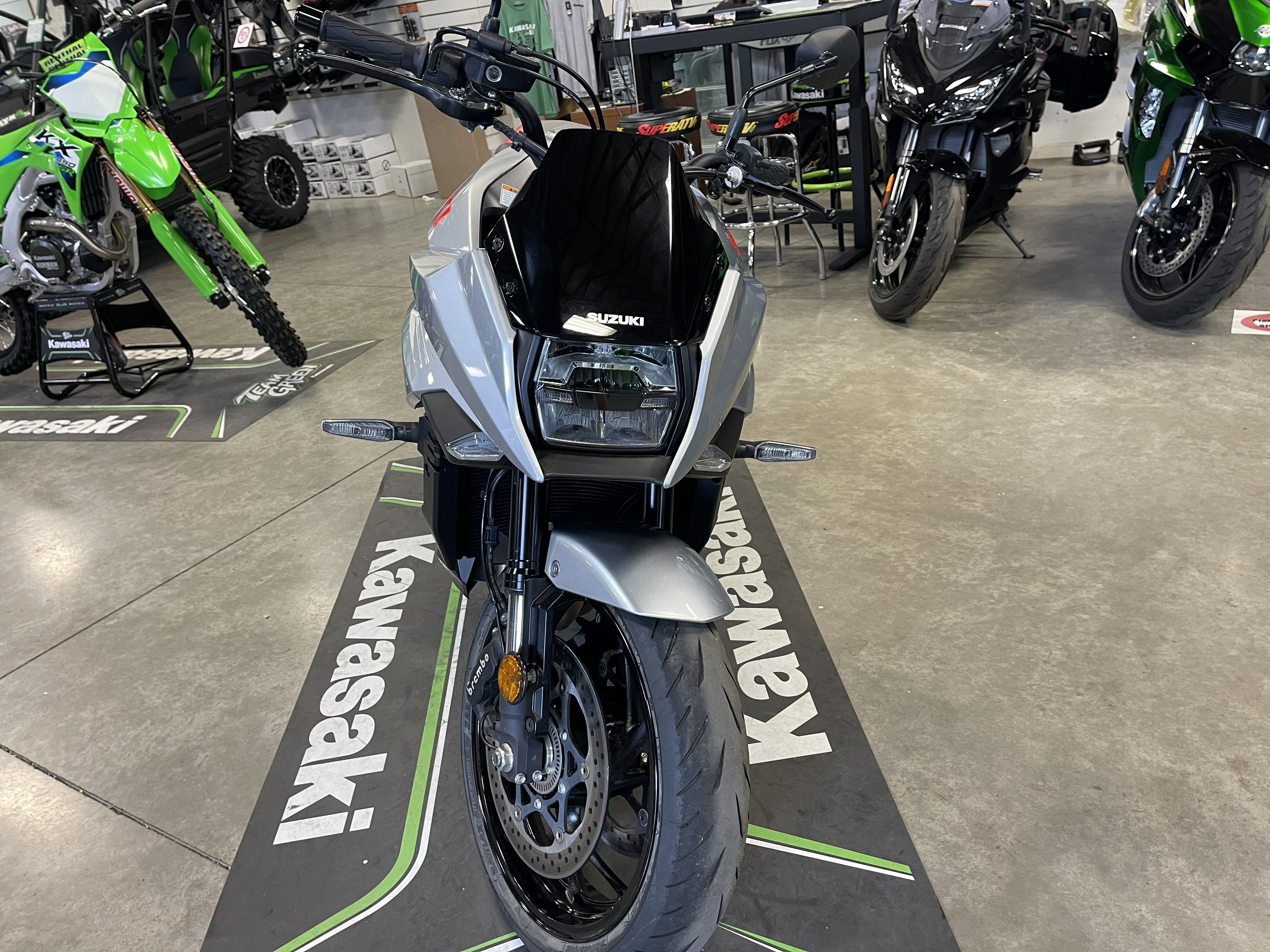 - Similar to the wheels on a GSX-S1000 model, the TRP six-spoke lightweight cast aluminum wheels are shod with Dunlop Roadsport 2 radial tires (120/70ZR17 front and 180/50ZR17 rear).
