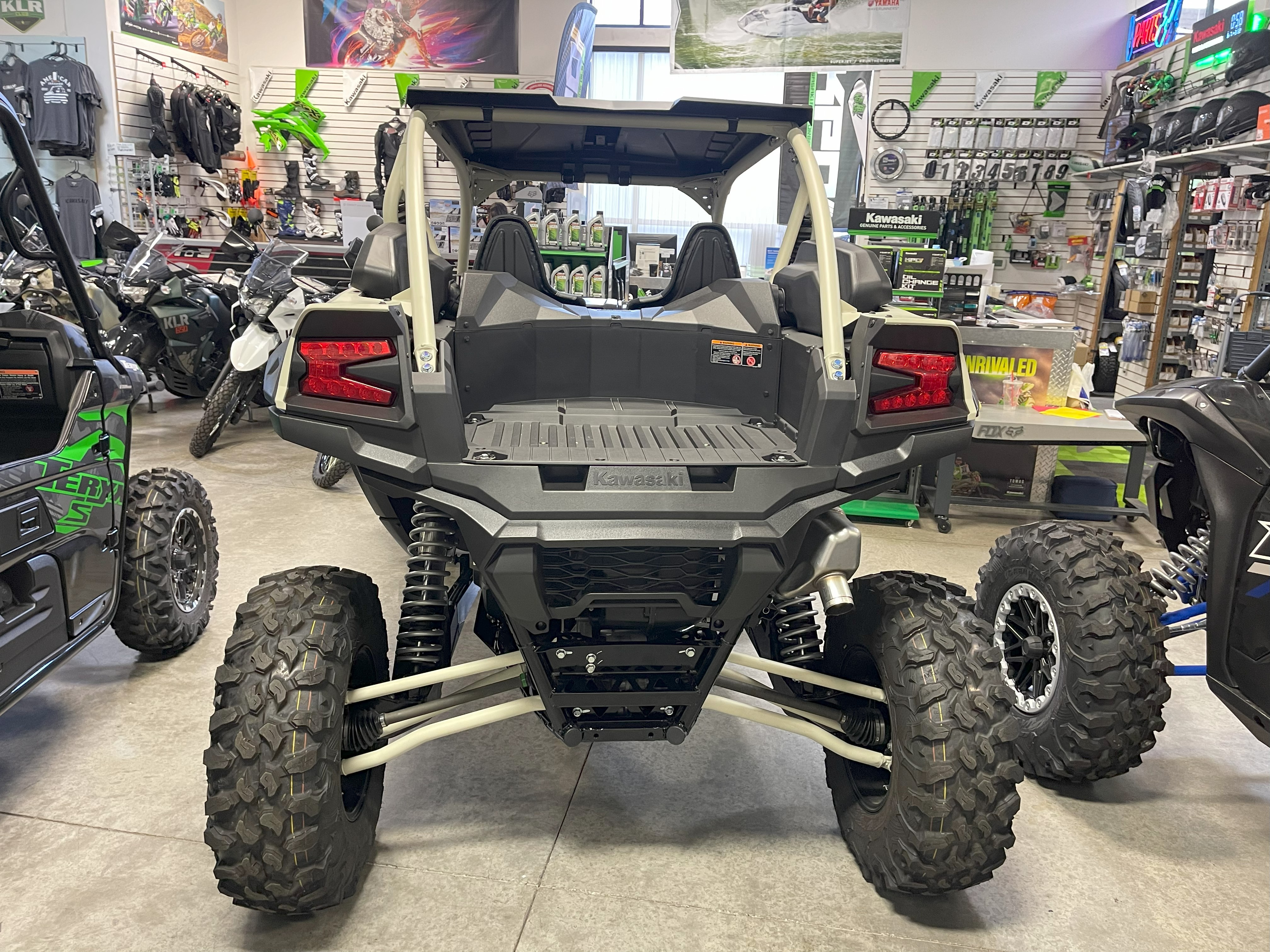 Killer KRX with Electronic Suspension! Clean Desert Sand/ Black colorway, 2 seater Trail ripper. Can be built/customized in well over 100 ways. Extensive Kawasaki catalog and even more so with the aftermarket. Ton of bang for you buck!