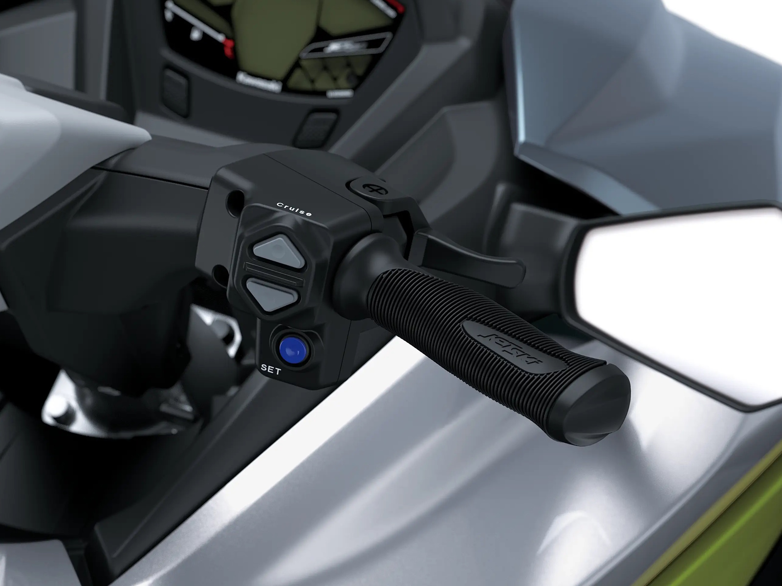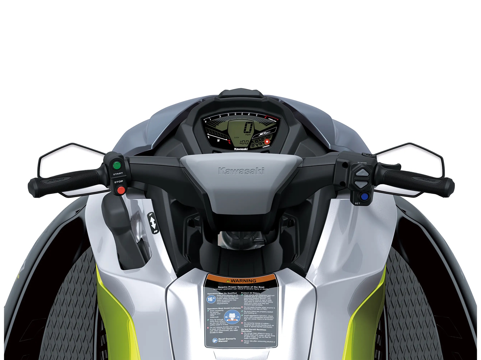 - Electronic Rider Aids: Electronic Cruise Control (adjustable), One-touch 5 mph (no-wake) Mode, Smart Learning Operation (SLO) Mode, Kawasaki Smart Steering