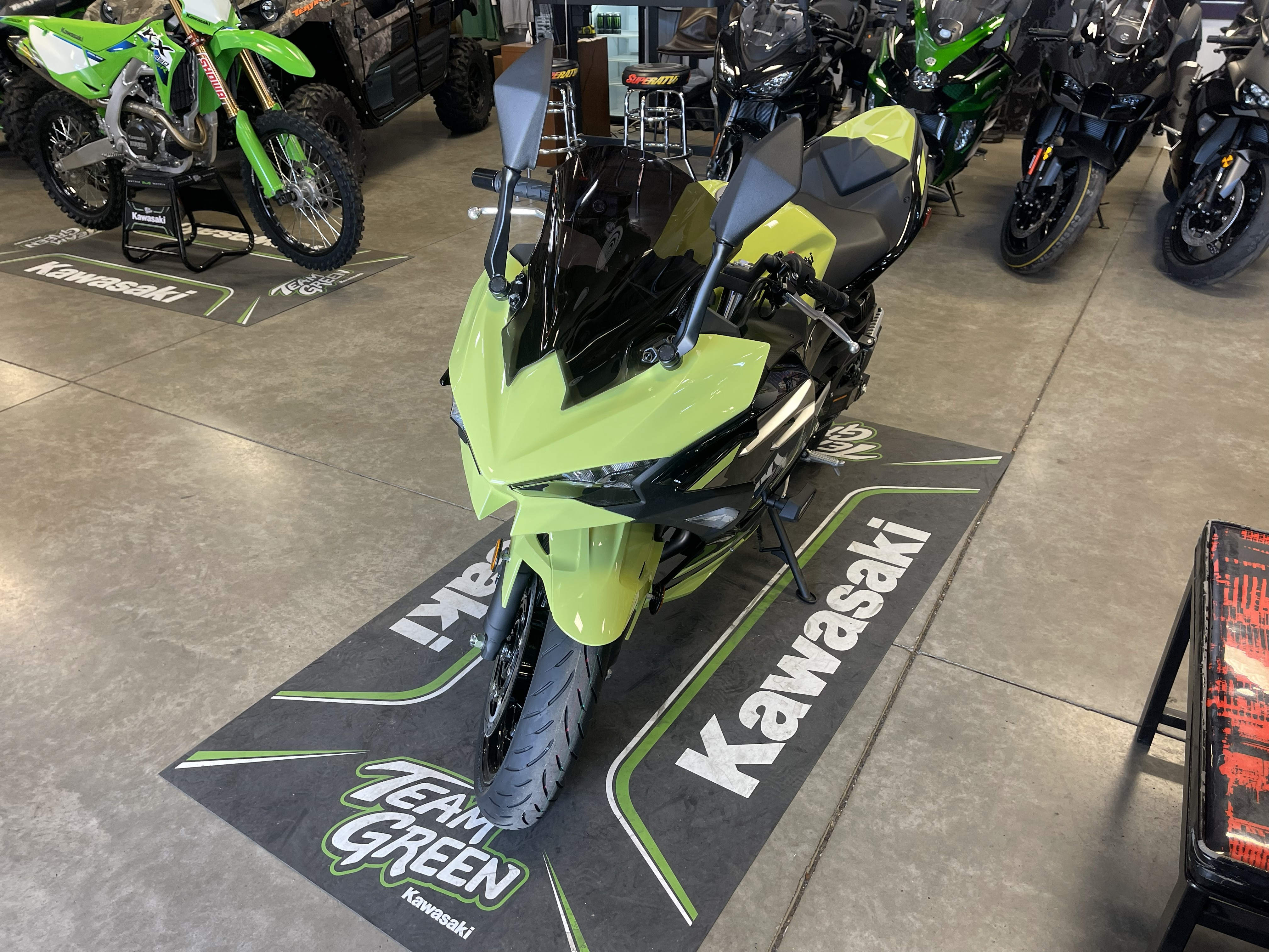 2026 Ninja 500 SE edition! about $600 or so more than the standard model but you get well over $6000 in accessories preinstalled! Keyless ignition, upgraded tft display, radiator guards, frame savers/protection, usb charging port, paint matched single seat cowl and tank pads! Pretty insane value with the SE models!